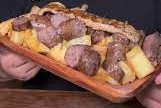 papa, yuca, arroz batido, carne