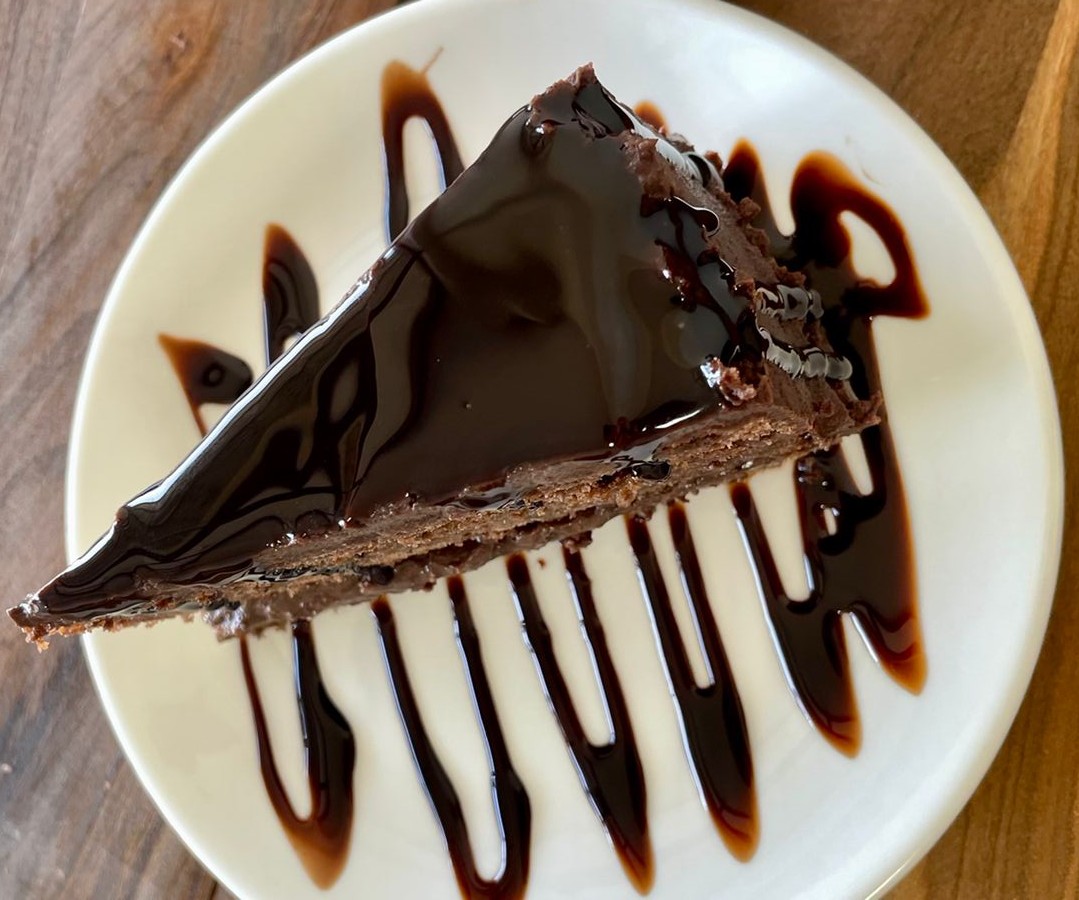 Porción de torta de chocolate, dulce y suave.