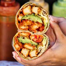 Burrito shawarma de pollo, delicioso y lleno de sabor.