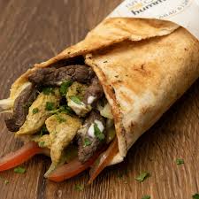 Burrito shawarma de carne, sabroso y bien condimentado.