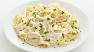 Espaguetis con salsa blanca cremosa al estilo Alfredo.