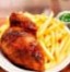 Arroz, papas fritas, fideos y una presa de pollo, todo en una sola bandeja. Una porción perfecta para una persona con buen apetito.